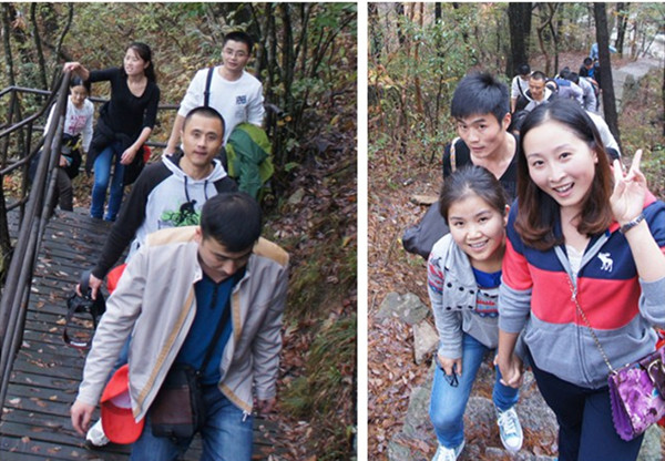 榮事達全體隊員不為艱難,奮勇而上,沒有一個人退縮亦無任何人掉隊。隊員們相互鼓勵,相互照應,遇到極其陡峭或較滑的路段,前面隊員總會大聲招呼后面隊友小心注意;在極難攀爬的上坡處,總有隊友伸出援手拉一把。經(jīng)過兩個多小時的艱難跋涉,所有隊員都成功登頂。