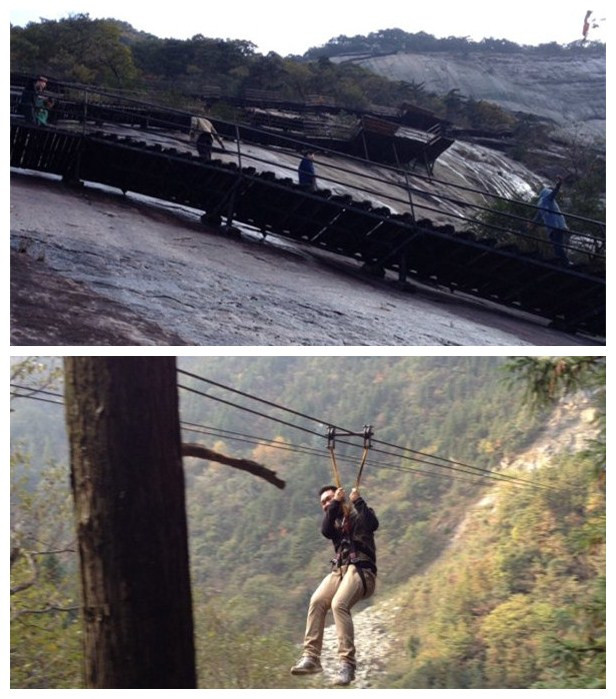 次日,在事業(yè)部總經(jīng)理王悅生的帶領下,市場部、招商部人員挑戰(zhàn)自我、峽谷飛渡,體驗了全長600米的溜索;勇攀矗立在懸崖峭壁上的白馬峰棧道,登峰頂、鳴古鐘,奏響勝利的號角。
