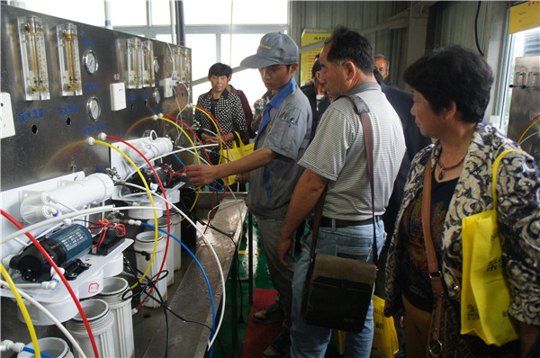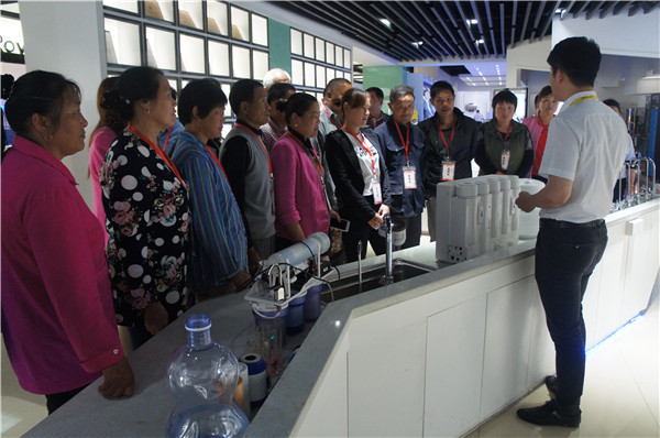 在產(chǎn)品展廳,接待人員給消費(fèi)者解說(shuō)了榮事達(dá)全線(xiàn)產(chǎn)品類(lèi)別,并講解了純水機(jī)、超濾機(jī)、飲水機(jī)、一體機(jī)等產(chǎn)品的不同功能及適用地區(qū)。參觀(guān)中,許多鄉(xiāng)鎮(zhèn)地區(qū)消費(fèi)者反映家里井水水垢水堿太嚴(yán)重、雜質(zhì)多,詢(xún)問(wèn)有沒(méi)有適合其使用的凈水機(jī),接待人員向其推薦了榮事達(dá)純水機(jī),詳細(xì)講解了純水機(jī)運(yùn)用RO反滲透技術(shù)、五級(jí)過(guò)濾系統(tǒng),能夠高效去除水垢、水堿、農(nóng)藥、化肥、細(xì)菌、重金屬等有害物質(zhì)的過(guò)濾效果。