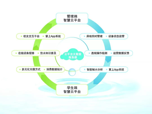 此外,榮事達(dá)著眼校園直飲水的互聯(lián)網(wǎng)化建設(shè),依托先進(jìn)的云端大數(shù)據(jù)平臺(tái)、無(wú)線網(wǎng)絡(luò)體系和智能一卡通技術(shù)等,創(chuàng)新打造ultraWiFi智慧管理系統(tǒng),系統(tǒng)直連ultraWiFi凈水主機(jī)、開水器、飲水機(jī)等終端定制設(shè)備,實(shí)現(xiàn)精細(xì)化管理。學(xué)生在使用中不僅能查詢飲水消費(fèi)記錄、在線報(bào)修設(shè)備、與校友交流等,還能擁有多元化充值方式選擇,充分享受快捷的智能化飲水體驗(yàn)。 同時(shí)設(shè)備運(yùn)營(yíng)商也可通過(guò)電腦或手機(jī)APP端口接入云數(shù)據(jù)平臺(tái),異地監(jiān)測(cè)工程運(yùn)行狀況,實(shí)時(shí)掌握水電成本、消費(fèi)收益、設(shè)備狀態(tài)等數(shù)據(jù)信息,日常管理更簡(jiǎn)單。