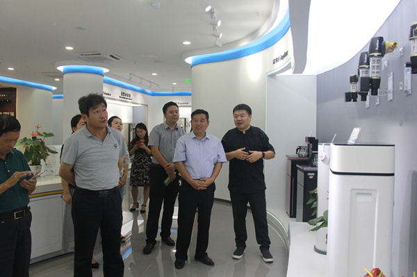 調(diào)研工作組在榮事達(dá)水工業(yè)集團(tuán)董事長雷鳴、工程公司總經(jīng)理劉東、安徽省凈水行業(yè)協(xié)會秘書長柳敏陪同下,先行參觀了榮事達(dá)水工業(yè)集團(tuán),實地考察榮事達(dá)智慧水世界展廳、六大科研實驗室、物聯(lián)網(wǎng)產(chǎn)品體驗中心、智能化生產(chǎn)車間等,對榮事達(dá)全系列凈水產(chǎn)品及諸多智能新技術(shù)表現(xiàn)出極大興趣,共同感受了榮事達(dá)校園直飲水、智能家居凈水、城市公共飲水、社區(qū)智慧飲水、農(nóng)村污水處理、工業(yè)污水處理、生活污水處理、醫(yī)療污水處理、海水淡化、景觀水處理等十大水處理系統(tǒng)多元化發(fā)展藍(lán)圖。