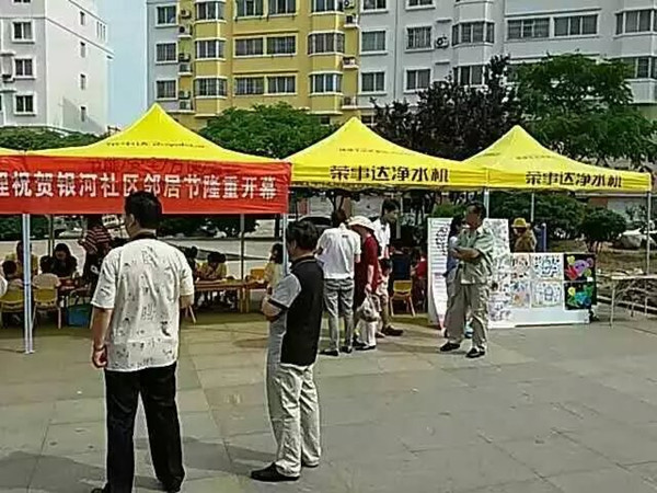 據(jù)悉,為了居民們在炎熱的夏日感受到一絲清涼,榮事達凈水機山東日照代理商和公司工作人員為居民們現(xiàn)場搭建帳篷,并且將凈水機搬到了活動現(xiàn)場,方便大家在參加活動的時候喝到免費安全的健康水?,F(xiàn)制現(xiàn)飲的純凈水受到了居民們的一致好評。