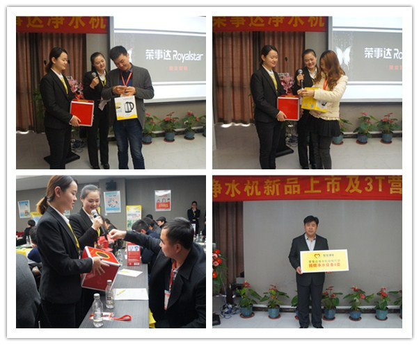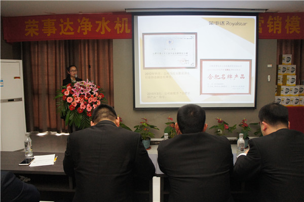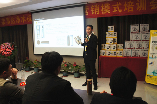 為應(yīng)對2016凈水市場快速發(fā)展的要求,榮事達(dá)精心推出R8櫥下智能純水機(jī)、箱體LED純水機(jī)、速熱飲水機(jī)等多款新品,適應(yīng)細(xì)分市場需求,助力終端網(wǎng)點(diǎn)提高市場占有率。在隨后的新品培訓(xùn)環(huán)節(jié),榮事達(dá)渠道開發(fā)部王部長和董部長對新品功能特點(diǎn)、市場定位進(jìn)行了詳細(xì)講解。新款純水機(jī)配備RO反滲透技術(shù)及五級過濾系統(tǒng),融智能顯示、自動化沖洗、防漏水設(shè)計于一體,并為用戶提供了櫥上、櫥下安置的不同選擇;新款飲水機(jī)采用厚膜加熱管原理,三秒即熱,并可實(shí)現(xiàn)多檔水溫水量調(diào)節(jié),使得家庭飲水更方便。新品踐行了榮事達(dá)產(chǎn)品定制的研發(fā)理念,類型多樣,既包含了可攻克農(nóng)村地區(qū)水壓不足不穩(wěn)狀況的自吸增壓凈水機(jī),也囊括了滿足城市居民追求健康時尚消費(fèi)需求的高端機(jī)型,參會客戶通過了解,紛紛表示定制新品市場定位準(zhǔn)確,前景極為廣闊。