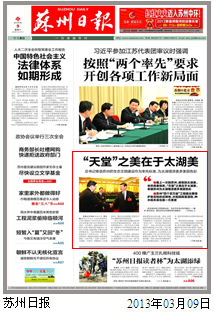 習(xí)近平對(duì)蘇州的秀美記憶猶新,“江南是個(gè)好地方,自古就有‘上有天堂,下有蘇杭’之美譽(yù)。之所以稱蘇杭為‘天堂’,不僅因?yàn)槟抢锝?jīng)濟(jì)繁榮、社會(huì)安定,‘日出江花紅勝火,春來(lái)江水綠如藍(lán),能不憶江南’,江南美景美不勝收啊?!薄懊利愔袊?guó)”需要和諧共建。蘇州的“四個(gè)百萬(wàn)畝”工程給總書記留下了深刻印象。在最后的發(fā)言中,習(xí)近平又一次“點(diǎn)評(píng)”起蘇州:“蘇州‘四個(gè)百萬(wàn)畝’工程提出要保護(hù)老百姓的莊稼地,水稻田就是濕地,種水稻本身也是一方美景,《紅樓夢(mèng)》里大觀園中也有稻香村嘛?!绷?xí)近平鼓勵(lì)說(shuō),和諧、全面是對(duì)科學(xué)發(fā)展內(nèi)涵理解得更深刻的反映,希望蘇州在率先、排頭、先行的內(nèi)涵中,把生態(tài)作為一個(gè)標(biāo)準(zhǔn),為江蘇乃至全國(guó)發(fā)展作出新貢獻(xiàn)。