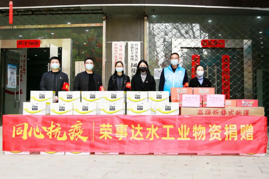 榮事達水工業(yè)集團在得知這一消息后,第一時間聯(lián)合黨支部來到長豐縣雙鳳開發(fā)區(qū)鳳巢社區(qū)黨群服務中心,為防控一線人員送去帳篷、方便面、飲用水等生活所需物資。