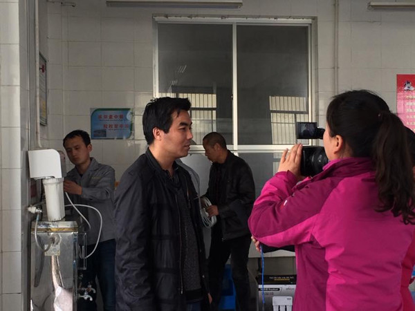 據(jù)了解,富平縣特殊教育學(xué)校共有師生200多人,大部分學(xué)生為聽障、智障兒童,由于學(xué)校是寄宿制,那里的大部分孩子吃住都在學(xué)校。然而,由于當(dāng)?shù)刈詠硭畨A十分嚴(yán)重,學(xué)校開水器經(jīng)常出現(xiàn)被堵塞的狀況,學(xué)生們?nèi)粘o嬎щy重重。