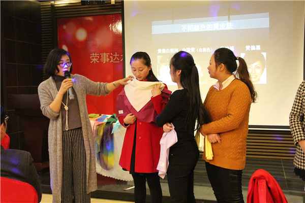 下午14時(shí),公司領(lǐng)導(dǎo)在古色古香、靈秀生動(dòng)的會(huì)場(chǎng)欣賞了美術(shù)館內(nèi)所珍藏的精美絕倫的油畫(huà)與雕塑作品;參加了由亞洲色彩形象中心認(rèn)證講師殷麗主講的顏值管理課程;與專(zhuān)業(yè)茶藝?yán)蠋熃涣髁似奋?、泡茶方法。在顏值講座環(huán)節(jié),通過(guò)講師精湛的理論講解、幽默的互動(dòng)交流、詳盡的案例分析,榮事達(dá)管理層成員對(duì)商務(wù)場(chǎng)合下儀容、禮儀、肢體語(yǔ)言的重要作用和實(shí)踐規(guī)范進(jìn)行了系統(tǒng)學(xué)習(xí)。