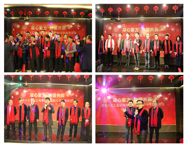 榮事達(dá)水工業(yè)公司中高管理層2016年新春酒會(huì)于1月27日在安徽省雕塑院1898文化會(huì)所隆重舉行,榮事達(dá)水工業(yè)公司董事長(zhǎng)雷鳴、總經(jīng)理支新郁及各分公司、事業(yè)部、部門(mén)領(lǐng)導(dǎo)共80余人出席。