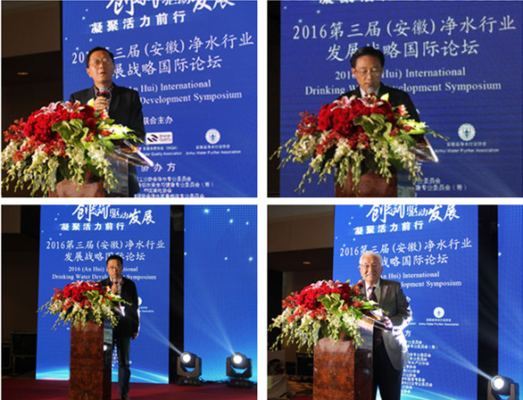 中國(guó)凈水行業(yè)專(zhuān)家網(wǎng)王占生教授、美國(guó)水質(zhì)協(xié)會(huì)中國(guó)事務(wù)總監(jiān)丁鵬先生、安徽省凈水行業(yè)協(xié)會(huì)王六一會(huì)長(zhǎng)上臺(tái)致辭,歡迎廣大與會(huì)專(zhuān)家、學(xué)者、企業(yè)家解析國(guó)內(nèi)外凈水市場(chǎng)發(fā)展現(xiàn)狀、特點(diǎn),分享企業(yè)創(chuàng)新發(fā)展的理念、思路,研討新形勢(shì)下凈水行業(yè)發(fā)展內(nèi)容、發(fā)展方向、發(fā)展趨勢(shì),為凈水行業(yè)的快速、健康發(fā)展開(kāi)闊思路。