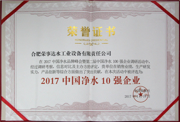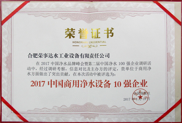 4月18日,2017中國(guó)凈水品牌峰會(huì)暨第二屆中國(guó)凈水100強(qiáng)企業(yè)頒獎(jiǎng)盛典在北京維景國(guó)際大酒店盛大舉行。榮事達(dá)憑借強(qiáng)勁實(shí)力和消費(fèi)者的信賴斬獲“2017中國(guó)凈水10強(qiáng)企業(yè)”、“2017中國(guó)商用凈水設(shè)備10強(qiáng)企業(yè)”、“消費(fèi)者滿意品牌”多項(xiàng)大獎(jiǎng)。