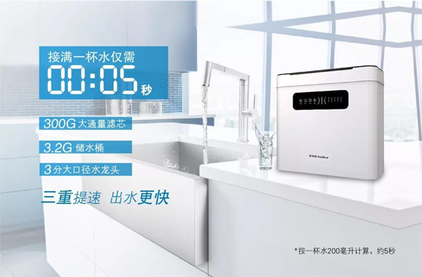 現(xiàn)代快節(jié)奏的生活下,人們對(duì)于“速度”的追求越發(fā)執(zhí)著。此次,榮事達(dá)發(fā)布的300G智能反滲透凈水機(jī)在出水速度提升上可謂是“不走尋常路”。其創(chuàng)新采用“大通量+大‘桶’量+大口徑龍頭”三重提速設(shè)計(jì),一方面選用“300加侖超大通量濾芯”,出水速度達(dá)到傳統(tǒng)50G凈水機(jī)的6倍;另一方面,用戶(hù)可DIY選裝3.2加侖儲(chǔ)水桶,搭配三分大口徑凈水龍頭,進(jìn)一步強(qiáng)化出水效率,接滿(mǎn)一杯200毫升水僅需5秒,讓用戶(hù)隨時(shí)享受不等待、不斷水的理想生活。