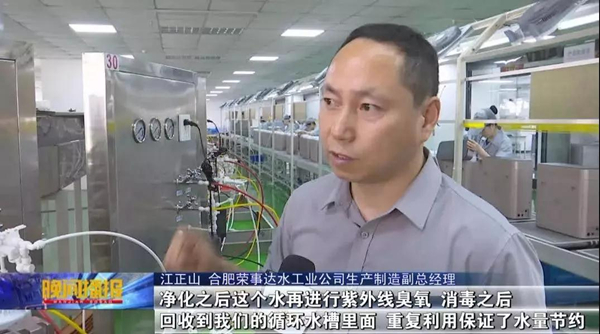 合肥榮事達水工業(yè)公司生產(chǎn)制造副總經(jīng)理江正山告訴記者,這個車間一天的飽和生產(chǎn)量能達到兩千臺,每臺設(shè)備都要經(jīng)過用水測試,一天用水量在20噸左右。為了節(jié)約用水,他們發(fā)揮企業(yè)科研優(yōu)勢,研發(fā)了一套新型節(jié)水系統(tǒng),僅這一個車間,一年就可以節(jié)水4千噸。