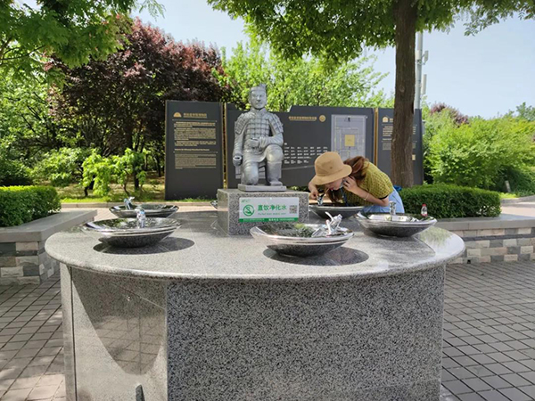 為更好地與環(huán)境相融合,此次秦始皇帝陵博物院所采用的直飲水設(shè)備皆為定制打造。多級水質(zhì)處理系統(tǒng)融合RO反滲透分離、臭氧消毒、紫外線殺菌等先進凈水工藝,能夠充分去除水中各類有害物質(zhì),出水純凈健康。而獨具匠心的外形則采用兵馬俑造型雕刻搭配天然大理石臺體,青灰莊嚴的古典色調(diào)與恢弘壯闊的秦陵風(fēng)采相得益彰,已然成為景區(qū)中一道亮麗的“綠色服務(wù)”風(fēng)景線,已申報外觀設(shè)計專利,備受行業(yè)矚目。