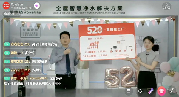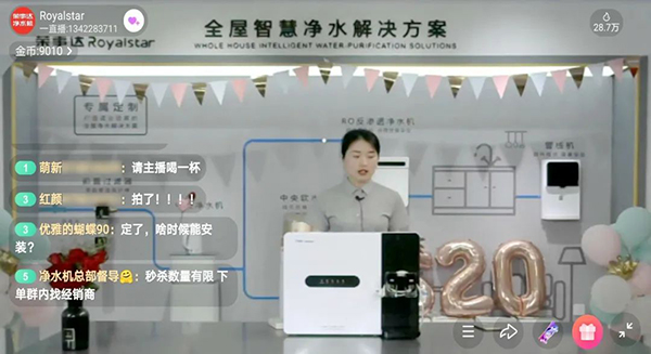 直播中,榮事達主播團隊向觀眾們分享了榮事達RO冷熱一體機以及全屋凈水系列產(chǎn)品,并對產(chǎn)品性能品質(zhì)進行了深度講解。此次直播活動的重磅套餐——榮事達全屋智慧凈水系統(tǒng),基于個性化家庭定制場景,涵括了前置過濾器、中央軟水機、反滲透凈水機、速熱飲水機、凈飲一體機等系列產(chǎn)品,完美實現(xiàn)用戶家庭直飲、洗滌、洗浴、燒飯、洗菜、衛(wèi)生等全屋凈水覆蓋,有效杜絕各類有害物質(zhì)侵襲,全方位呵護家庭飲用水健康。榮事達高品質(zhì)、高顏值的明星產(chǎn)品一經(jīng)推出,吸引了直播間觀眾紛紛留言詢價。直播間超低折扣、精品爆款限量秒殺、預訂讓利以及好禮免費送等福利更是讓參與活動的消費者熱情高漲,對榮事達的“良心讓價”好評如潮。
