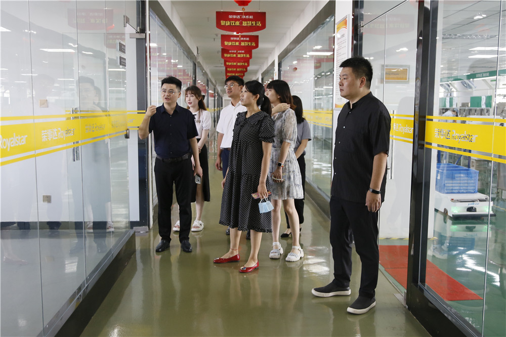一行領(lǐng)導(dǎo)先后參觀了榮事達(dá)智能化生產(chǎn)車間和智慧水世界展廳,了解榮事達(dá)企業(yè)綜合實(shí)力及十大水處理產(chǎn)業(yè)具體發(fā)展?fàn)顩r,現(xiàn)場體驗(yàn)了企業(yè)最新研發(fā)定制產(chǎn)品與自主開發(fā)的物聯(lián)網(wǎng)校園智慧管理系統(tǒng),并為榮事達(dá)行業(yè)領(lǐng)先的技術(shù)實(shí)力點(diǎn)贊。