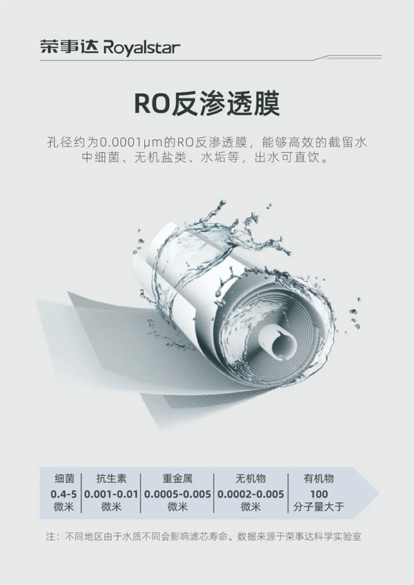 產(chǎn)品采用RO反滲透技術(shù)和五級(jí)過濾系統(tǒng),PP棉有效濾除原水中的鐵銹、泥沙等顆粒物;壓鑄活性炭濾芯吸附凈化,有效濾除余氯及異色異味;RO反滲透膜有效濾除水堿水垢及重金屬微生物;后置活性炭改善口感、出水甘冽。完美解決學(xué)校飲水各項(xiàng)難題,滿足師生健康飲水需求。