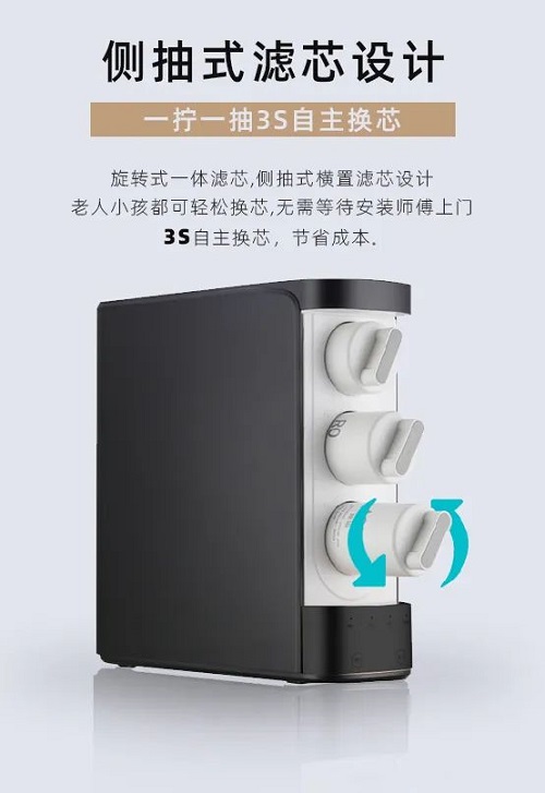 科技讓生活更美好。榮事達智能反滲透純水機利用科技之力實現(xiàn)產品創(chuàng)新,讓更多人都能享受科技帶來的美好生活,側抽式濾芯設計,一擰一抽3秒自主換芯,真正體現(xiàn)了將細節(jié)做到極致。