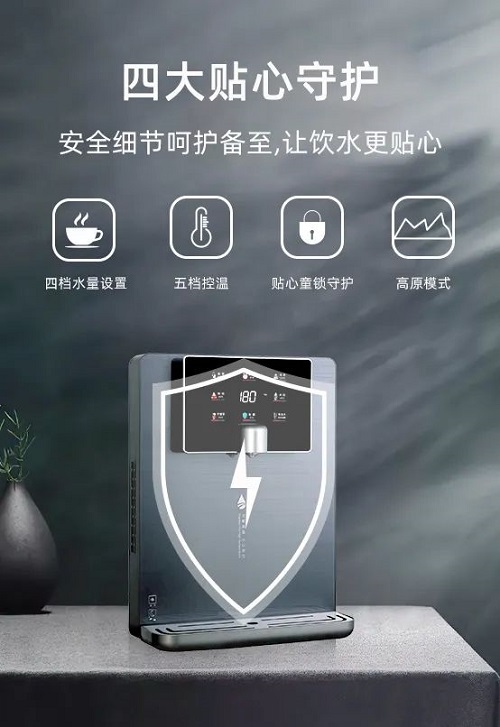 四大貼心守護,讓飲水更貼心。四檔水量設置,定量取水,無需等待;五檔控溫,專溫專飲,給您最適宜的溫度,滿足多種需求;貼心童鎖守護,童鎖鍵預防寶寶誤觸,避免安全隱患導致燙傷,安全細節(jié)呵護備至;內置高原模式,適應各類海拔高度,充分考慮高海拔地區(qū)家庭飲水需要。