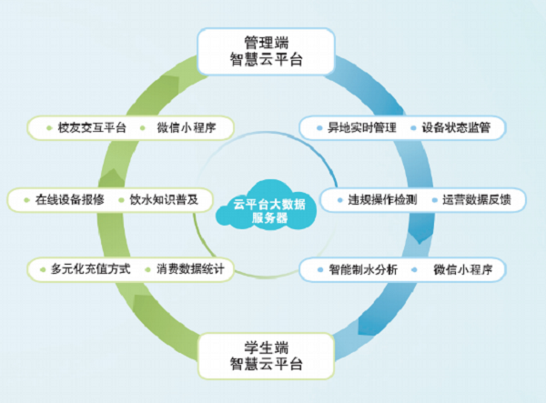 在注重產(chǎn)品品質(zhì)的同時,榮事達水工業(yè)公司集合各系統(tǒng)優(yōu)勢,嫁接互聯(lián)網(wǎng)+新模式,創(chuàng)新打造“校園直飲水智慧管理系統(tǒng)”,從管理者(運營商、校方)、學生出發(fā),實現(xiàn)校園直飲水BOT項目科學化、系統(tǒng)化、便捷化管理及使用。