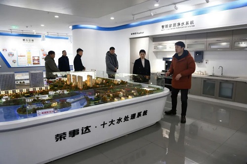 領(lǐng)導(dǎo)一行先后參觀了榮事達(dá)智能家用凈水生產(chǎn)車間和智慧水世界展廳。了解榮事達(dá)企業(yè)綜合實(shí)力及十大水處理系統(tǒng)具體發(fā)展?fàn)顩r。