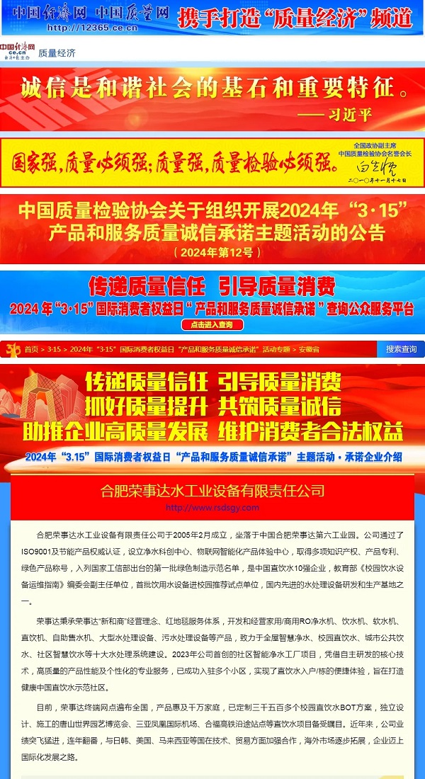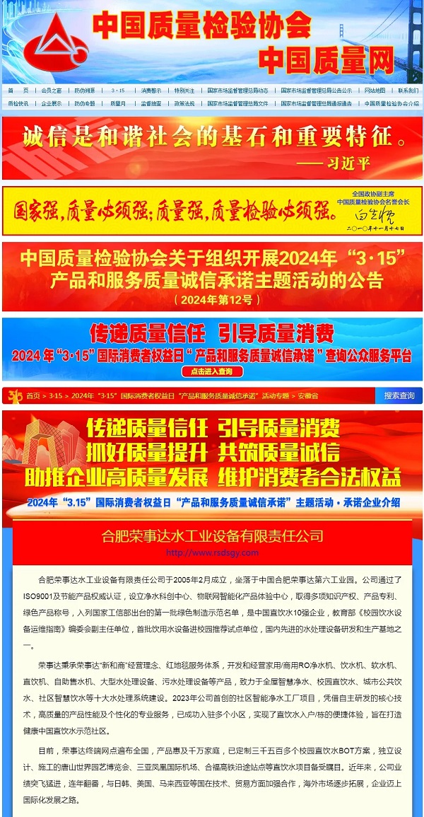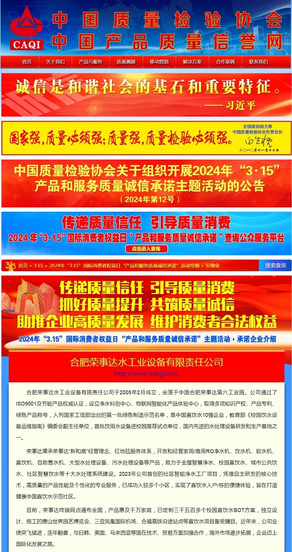 - 熱烈祝賀榮事達(dá)在2024年全國“3·15”活動中斬獲“全國凈水行業(yè)質(zhì)量領(lǐng)先品牌”、“全國產(chǎn)品和服務(wù)質(zhì)量誠信示范企業(yè)”等七項(xiàng)殊榮