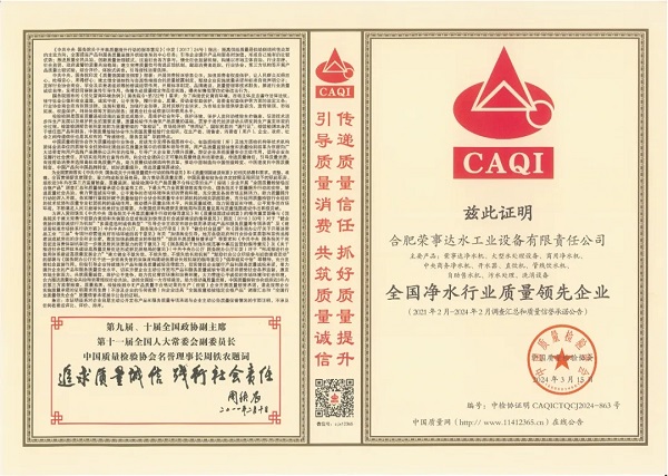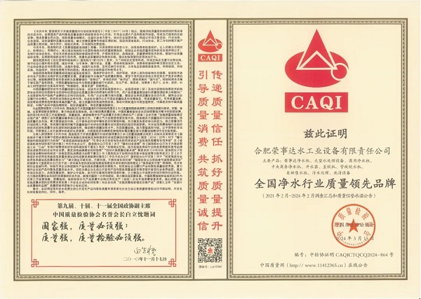 傳遞質(zhì)量信任,引導(dǎo)質(zhì)量消費(fèi)。 在由中國質(zhì)量檢驗(yàn)協(xié)會主辦的2024年“3·15”產(chǎn)品和服務(wù)質(zhì)量誠信承諾的主題活動中,榮事達(dá)水工業(yè)公司憑借卓越的產(chǎn)品品質(zhì)及良好的社會形象,獲得協(xié)會以及權(quán)威專家的一致認(rèn)可,榮膺 “全國產(chǎn)品和服務(wù)質(zhì)量誠信示范企業(yè) ”“全國凈水行業(yè)質(zhì)量領(lǐng)先企業(yè)”“全國凈水行業(yè)質(zhì)量領(lǐng)先品牌”“全國產(chǎn)品和服務(wù)質(zhì)量誠信品牌”“全國質(zhì)量檢驗(yàn)穩(wěn)定合格產(chǎn)品”“全國質(zhì)量檢驗(yàn)信譽(yù)保障產(chǎn)品”“全國消費(fèi)者質(zhì)量信譽(yù)保障產(chǎn)品 ”多項(xiàng)榮譽(yù)。