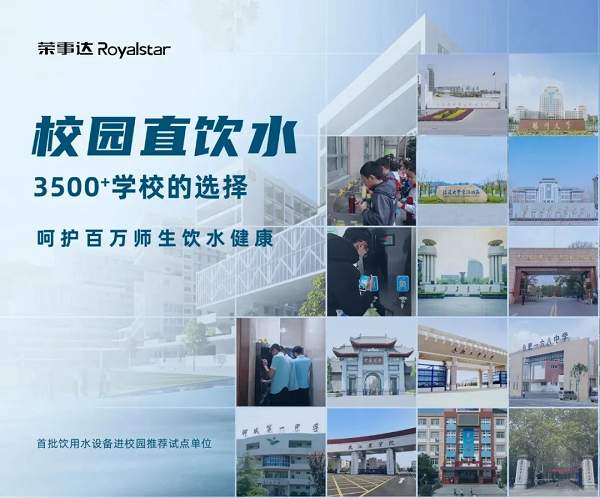 榮事達水工業(yè)公司作為飲用水設(shè)備進校園推薦試點單位,并被教育部《校園飲水設(shè)備運維指南》編委會任命為副主任單位,憑借新設(shè)計、新模式、新服務(wù)等優(yōu)勢,在業(yè)界樹立了良好的口碑。公司先后承建了包括中國科學技術(shù)大學、河南大學、武漢商學院在內(nèi)的3500多所學校的直飲水工程,為千萬師生提供了優(yōu)質(zhì)的飲水服務(wù)。