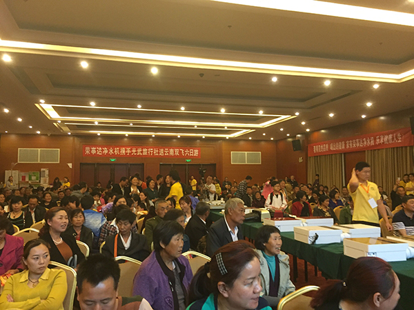 下午一點,許多消費者已早早到達,近千人的會場內(nèi)熙熙攘攘、人頭攢動?;顒娱_始后,榮事達市場工作人員給參團消費者介紹了榮事達水工業(yè)公司的企業(yè)實力,展示了榮事達“中國直飲水10強企業(yè)”等多項榮譽資質(zhì),并著重講解了此次團購會推出的純水機、一體機產(chǎn)品的功能、特點、參數(shù)。
