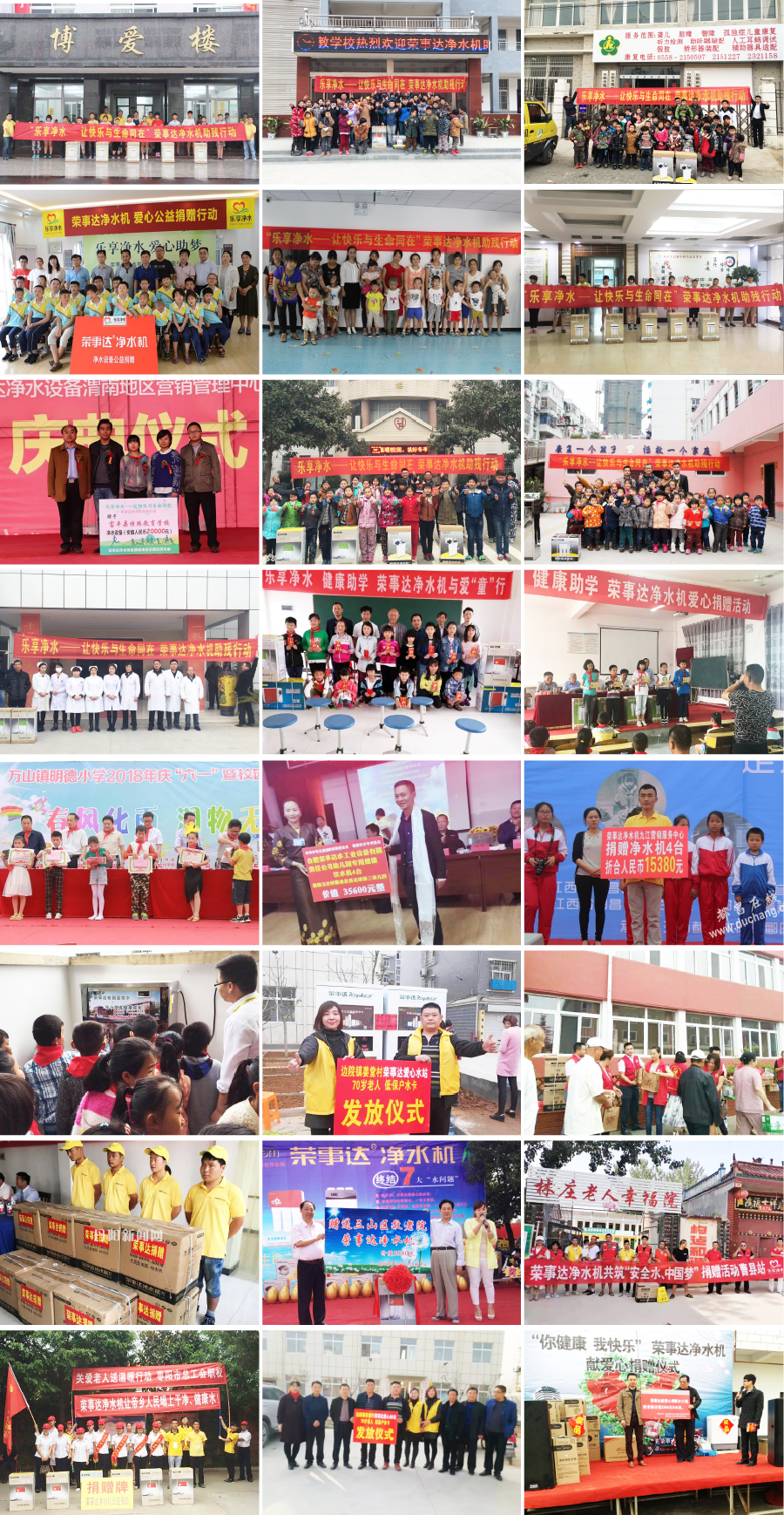 ——2019——在2018和2019兩年里榮事達“樂享凈水”公益行動備受社會關注不僅有廣大代理商及合作伙伴的積極參與也得到了更多社會公益組織協(xié)助與支持比如,在2018年里,我們“樂享凈水”公益團隊攜手共青團金寨委員會、金寨希望公益服務中心走進紅色革命老區(qū)——金寨縣,開展健康助學為全縣中小學捐贈直飲水設備近500套+被全國文明辦評為“全國百佳公益項目”2019年,攜手中華少年兒童慈善救助基金會成立“健康飲水專項基金”未來將會為貧困及殘障兒童提供更多幫助齊心協(xié)力,眾志成城“樂享凈水”公益行動迎來了更多愛心力量
