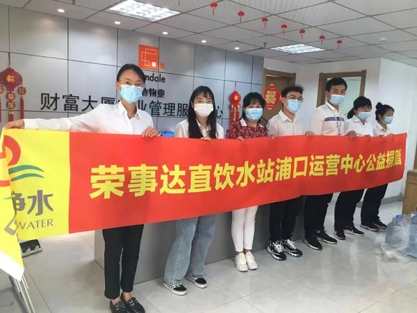 5月31日,榮事達(dá)直飲水站南京經(jīng)銷商王新玲向上海金地物業(yè)有限公司南京分公司捐贈價值萬余元的物資——榮事達(dá)直飲水水卡和榮事達(dá)飲水機,保障全體物業(yè)工作人員在疫情防控期間也能喝上安全健康好水。