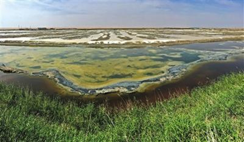 當(dāng)?shù)啬撩裾f(shuō),這些排污池實(shí)際上是蒸發(fā)池,未經(jīng)處理的廢水排入后,經(jīng)過(guò)自然蒸發(fā),然后將沉淀下來(lái)的黏稠的沉淀物,用鏟車(chē)鏟出,直接埋在沙漠里面。
