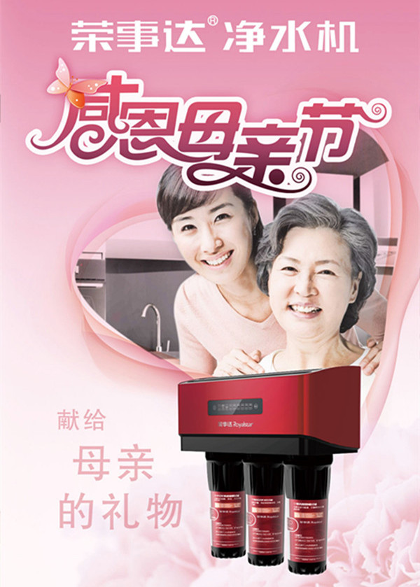 時光流逝,歲月催老,家人的健康是每個子女的心愿。這個母親節(jié),為親愛的媽媽送上一臺優(yōu)質(zhì)貼心的凈水機吧,在傳遞濃濃情意的同時,為她們締造理想、舒心的飲用水生活!
